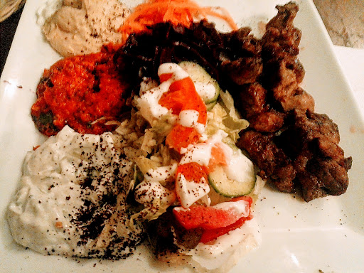This place was right in front of our Airbnb, so we went there by chance the first night around 7pm and they said all the meat was gone already. We thought this was a sign of meat freshness so we came back the following night (earlier of course 😉). This time we could choose between lamb, meet and chicken and we chose the first. There is no English menu and unfortunately we were not offered to choose between the several good looking sides available (a shame), the guy who was taking the order was not very talkative. So we went to find a table, the are about half a dozen of tables so it was easy to find a spot (apparently many people takes it out). The table was not get clean, we had to do it. Also tablecloths are not available. Atmosphere is relax inside, even if many people are on the line at the counter. After about 10-15 minutes we got our dishes with lamb skewer right from the BBQ (they cook to order), in a nice plate with 5-6 sides, everything quite good although vegetables were cold (as it usually happens in Denmark). As a side also a pita bread, a little small actually for the quantity of vegetables. In general I can say a good meal. Also consider they only take cash or dansk cards. We had to go and get some cash to finalize the order... Beer is not available. Restroom available downstairs, not in great conditions. I can't recall the price so I cannot say anything...