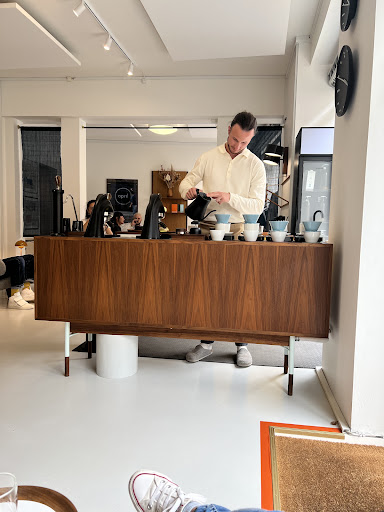 The barista, while seeming quite knowledgeable about the coffee, lacked any charisma whatsoever. It felt more like an awkward presentation than a convincing sell of their product. When I ordered two hand brews, he proceeded to very uncomfortably announce that since April provides "high quality fine coffee" the price for each cup is 150kr (€20/$21).