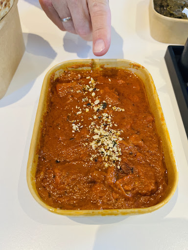 Food : Lamb — serve warm but no taste at all 🤦🏻♀️ Butter chicken — serve really warm and taste ok but over sweet. They put too many raisins(see the pictures), may be they adjust sweet version for Danish market ?