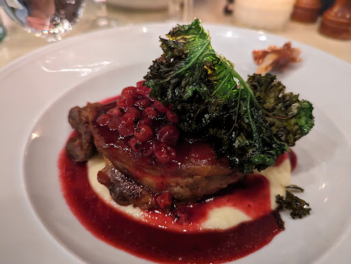 Waiting for our table, we had some lovely olives for snacks, and a crisp and satisfying Sancerre white. Excellent start. We ordered the menu that had six servings. The bisque: Langustini was perfectly cooked, but the bisque had a bit too much cream in it for my taste, taking away some of that power and bitterness. We had the Mumm champagne for the bisque, which I think was served way too cold. The croquettes were a little bland and didn't have much flavour to it. So it was somewhat disappointing, although it was well prepared and the currants freshness was a good match with the greasy croquettes. The tartare itself was excellent, but lacked salt. The chips were also perfectly cooked, but I thought the terragon mayo overpowered the flavour of the tartare. On to the burrata (served as a shared dish), which were quite a surprise. Served with gremolata, and perfectly toasted bread. I have never tried this combo before, but I really loved the dish. The balance of the burrata and gremolata varied with each bite, but was somehow still perfect every time. Once in a while putting it onto the bread, gave that crunch you sometimes need, then using the last bread to scoop up the last bit of the dish. Just wonderful. They ran out of duck breast, so we had duck confit of the legs, which I love, so for me it wasn't a big deal. The dish was well prepared, the pommes puree a little too bland in flavour, and the duck was a bit too salty - which didn't help the puree. Still, we enjoyed every bit of it, picking of every last bit of the bones. We had the red Bourgogne, which was a really nice wine, and worked perfectly with the duck. Then the lights went out! Only the kitchen still had light, but the ventilation wasn't working either, so a bit of smoke started to pour into the restaurant. Staff was quick to apologise, and offered candles for each table. It was actually a nice setting, but it also had a great impact on the dessert, as the apple cake (picture missing) was served straight from the fridge rather than warm. It kinda ruined the experience. I did like the cardamom ice cream, but it overpowered the apple cake as it was supposed to be served warm.