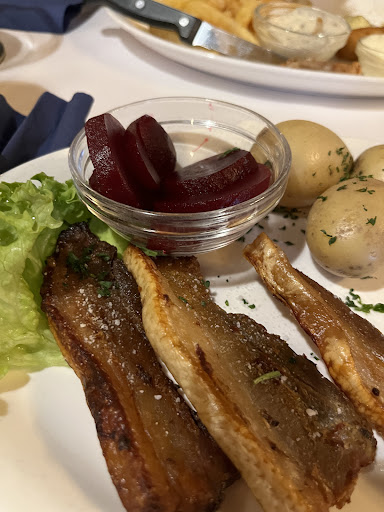Read moreI’m not sure how this restaurant won an award. The place is unwelcoming and the food does not make up for it. They didn’t even get fish and chips right!! You would expect the fish to be crispy on the outside right? Well it was soft and the fish inside was chewy. The stregt flæsk on the other hand was so crispy it was inedible. Some parts were so fried they were burnt. Potatoes had 0 flavor. The server had a condescending tone whenever we walked to her and we only spoke to her to put in our order and ask for the bill. Also keep in mind there is automatic 25% VAT. Save your money and go...