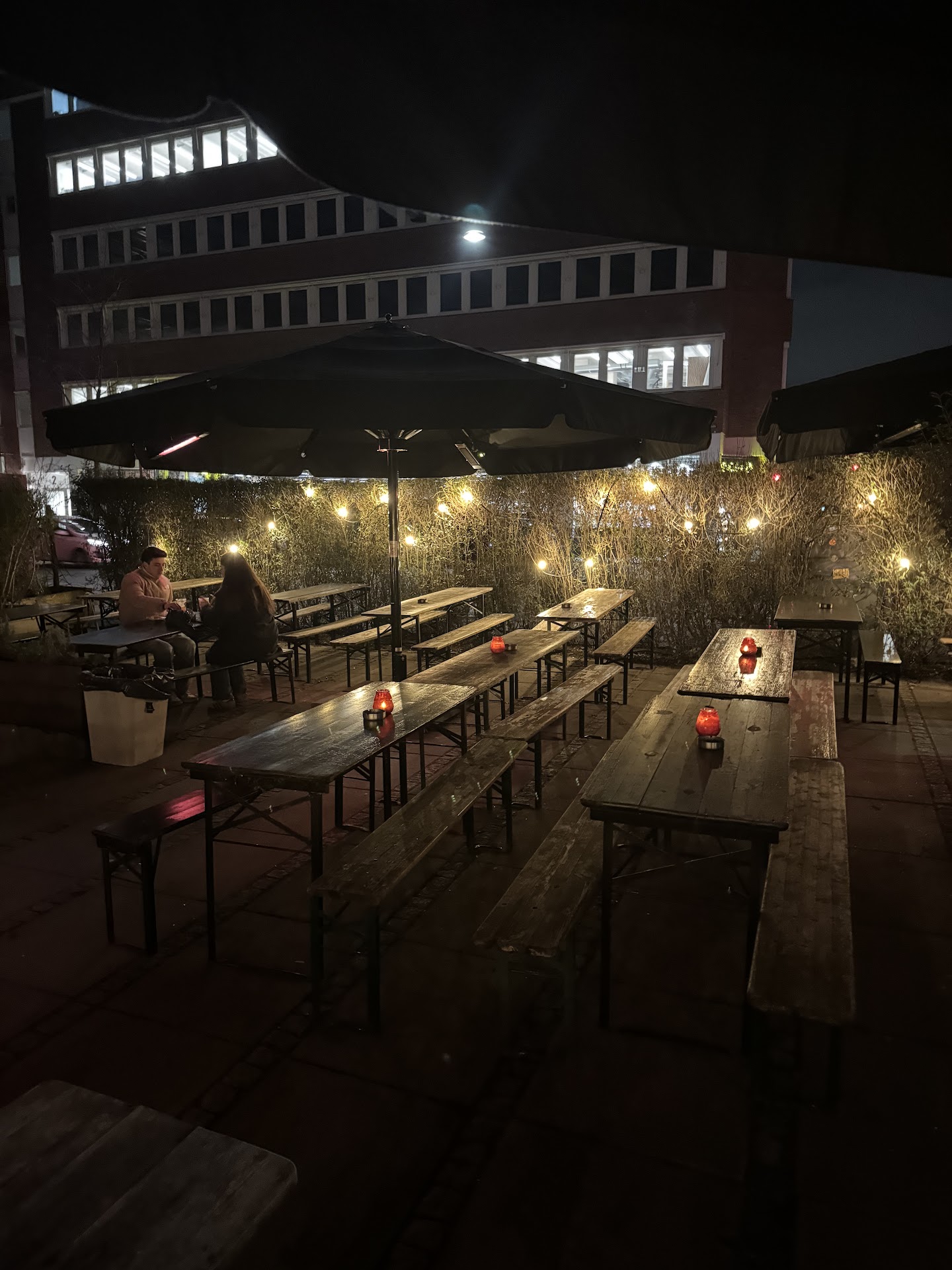 Poorly lit, dingy benches and heating is sparsely distributed. Went in with a couple mates and was 'served' by a reluctant bartender who by the second taste tests was definitely getting annoyed with his job, so we caved and just bought something for 40kr each. Unfortunately I had the medium cider, which after bring passed around my table could only be described as PISS-tasting. Specifically the taste of urine mixed with chlorine from a public bathroom (mate who recommended it to me confirmed it was weirder than last she had it). Went back and asked the tender nicely if they'd replace it, but no, if you blindly buy a piss microbrew in this place, it's your own damn fault and you can just buy another one (no replacement offered, not even sympathy). This bar is only good because of its location. Would...