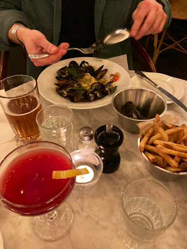 We really enjoyed the restaurant and the service. We came for a lunch on April 19th at 1240pm. We had Moule Fritz and Fish and Chips with each a glass of white wine. We were greeted by a warm waiter from Argentina named Juan Cruz. 😊