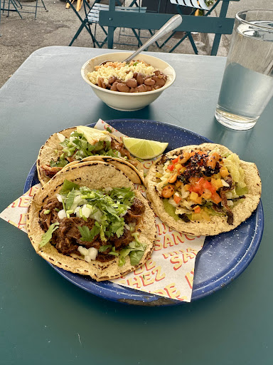 Read moreAfter being in Europe since August 21, I had a serious craving for Mexican food. When I landed in Copenhagen, I immediately sought a restaurant for my craving and came across Hija de Sanchez. Walking there from my hotel, I was met by a much smaller restaurant than I expected. If I had done more research other than looking at the food, I would have realized this is a mostly-take-out restaurant. Although there is some limited inside and outside seating(one table to seat ~4 inside, several small tables for 2 outside), it is not the sit-down restaurant I was expecting. But, considering it was nowhere near Mexico, it was quite good. I ordered the taco combo, along with a side of beans and rice.