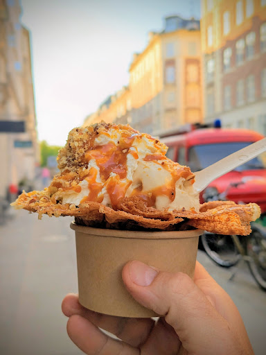 This is some of the best ice cream I have ever had--certainly some of the best in Copenhagen. They mix the ice cream fresh, right in front of you, with foggy nitrogen going everywhere, like a witch's cauldron. The flavor is fresh and natural, but still sweet, and the texture is velvety and creamy. They have a limited set of fresh flavors each day--about half a dozen--but you will find something you love. Do yourself a favor and splurge on a sundae. The waffles and crunchy toppings are phenomenal, and the cardamom waffles are inspired. We tried the mint chocolate chip, the salted caramel, the classic vanilla, and the mango coconut. Incredible. All other ice cream tastes like ash in my mouth now. I...