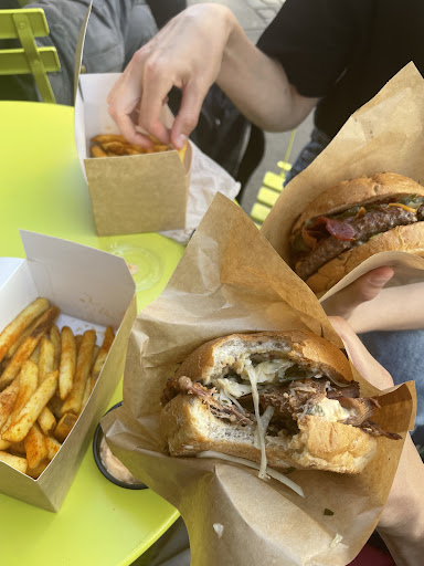 Warning: the burger paper does not contain the fatty liquid for long. The nice couple before us averted us just before our trousers would have been soiled. I would reco to change the paper (maybe bad glue in the joint) or at least inform about this.
