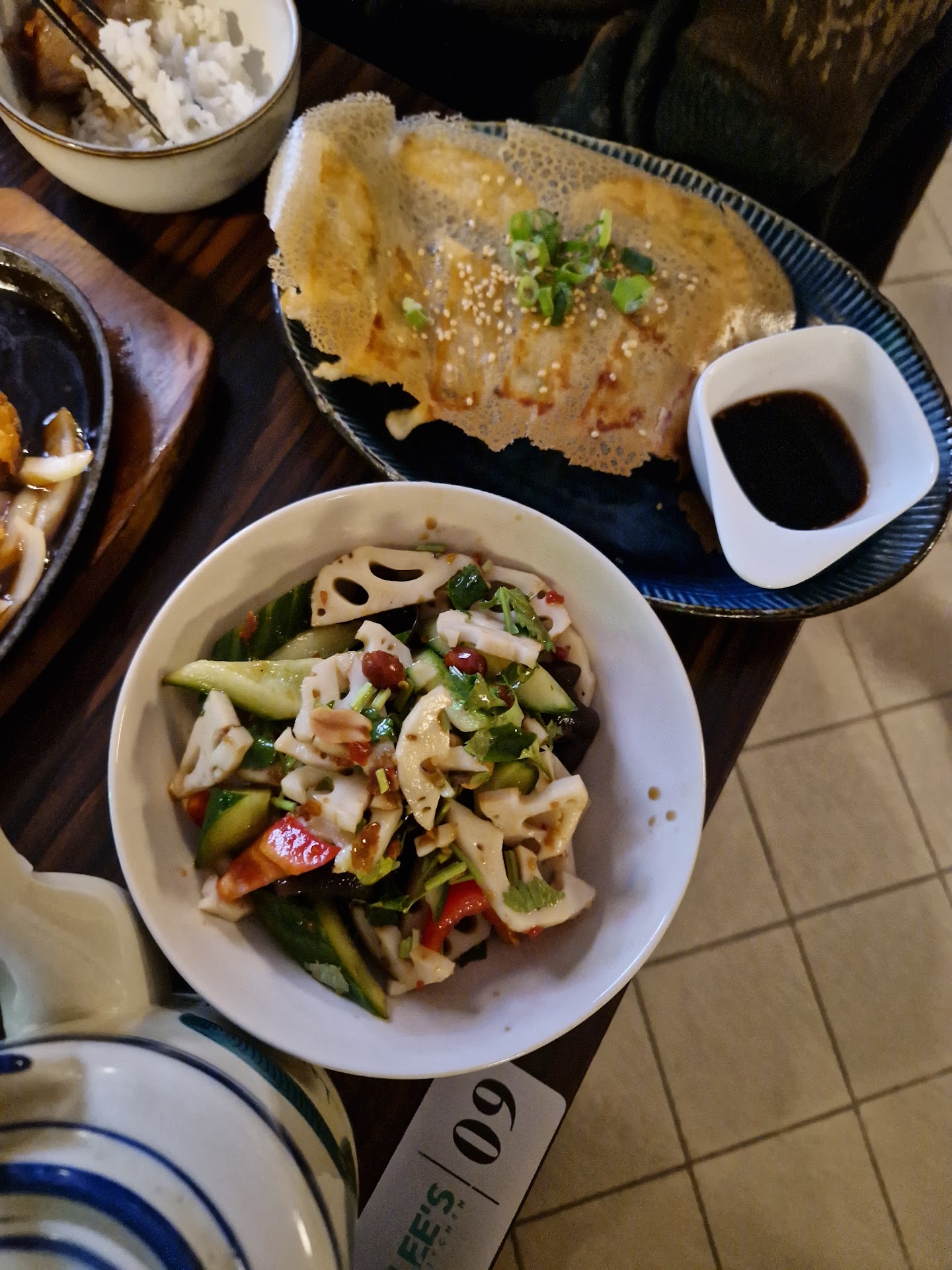 Had the Feb 2024 monthly special Typhoon shrimp, and shared the sides of lotus root salad, crispy chicken and pan fried dumplings, while a friend had the main Char Sui fried rice with bok choy. Over ordered a bit so ended up each taking home half our mains and some of the sides each, so great value for money if you consider it's 4 meals instead of 2!