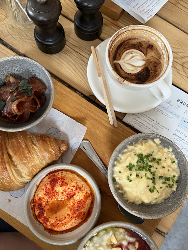 located just 4 blocks from my airbnb while on vacation in CPH this was a reccomendation from my host as a must go spot for weekend brunch. being a big fan of brunch fare i had to go see for myself. glad i did as this was a winner for sure. the idea of picking all my items from 3 to 7 items as i wish was unique as i am picky with my foods and like to get big meals for brunch also. the options were wide and diverse and everything seemed to be of very high quality and prepared in uniqe ways as well. nothing bland or basic. i did the 5 item opton with salmon, bread, fruit salad, fried eggs and my favorite cake....carrot! plus house coffee which is on point! my meal as shown was delicious! i almost wish i had done the 7 options to get 2 more items to try out. next time i guess. service is fast although i was the 4th person in the door after a sunday opening. cute place inside thats cozy and welcoming. seats about 30 people inside. waitress was quite and not very talkative at all but im ok with that. food was great, fast and affordable. id go...