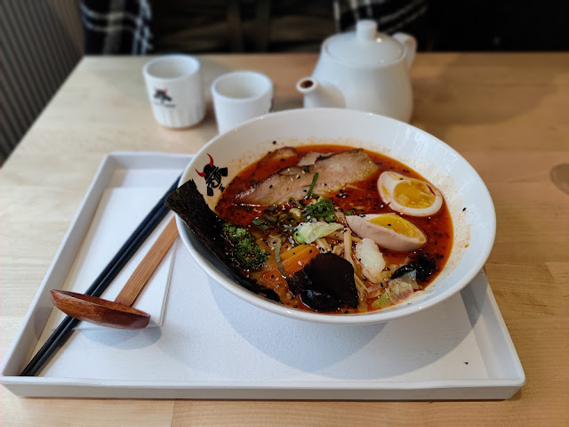 To put it simply, the tonkotsu ramen is simply not real tonkotsu. Noodles were extremely overcooked, to the point where I was having a hard time slurping them because they kept breaking. I was at no point asked if I wanted tougher or softer noodles, so I assume I was given the noodles at their "standard" hardness for this place. The broth was very watery and didn't taste like much, so it seems it was not done the proper way either. It was a red flag already to see the menu propose "levels of spice" on a tonkotsu, but I decided to give it the benefit of the doubt and came out disappointed. The charsiu pork was a good sized portion but didn't taste like much and the texture wasn't ideal (a little tough, couldn't really cut it with chopsticks or take a bite easily). Egg was cooked correctly, but wasn't marinated.