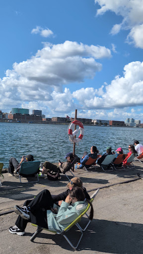 The quality of the food is very good, everything feels clean and well organized, and the atmosphere is full of good vibes. Sitting by the water with a drink, trying different flavors, and just relaxing makes it a perfect spot to spend a few hours. Near the waterfront you can even grab a free chair, sit back, and watch the ships and boats pass by. In the center there’s also a skateboarding area, which makes it fun for kids and gives the whole place an extra lively, creative energy.