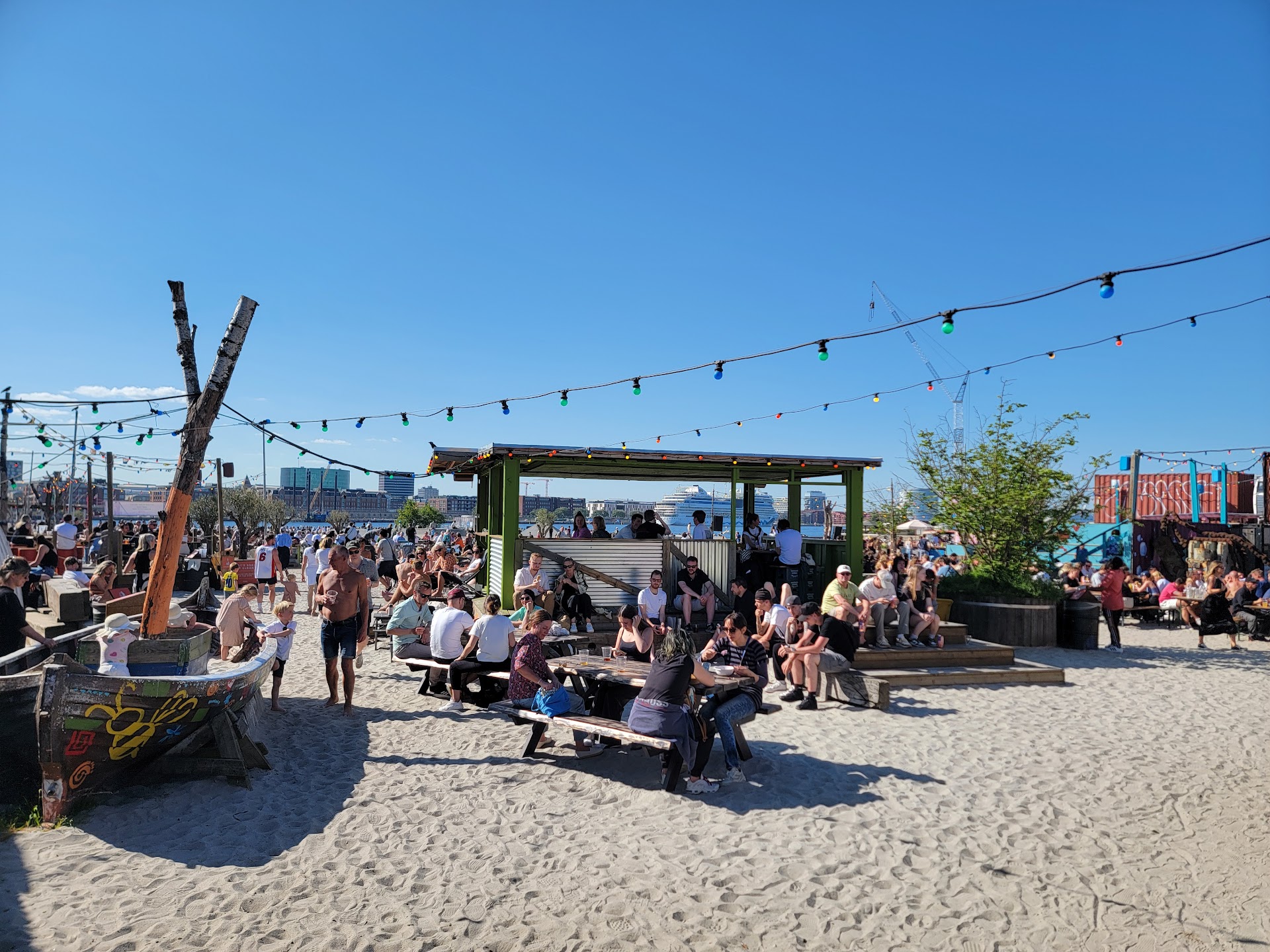 The quality of the food is very good, everything feels clean and well organized, and the atmosphere is full of good vibes. Sitting by the water with a drink, trying different flavors, and just relaxing makes it a perfect spot to spend a few hours. Near the waterfront you can even grab a free chair, sit back, and watch the ships and boats pass by. In the center there’s also a skateboarding area, which makes it fun for kids and gives the whole place an extra lively, creative energy.