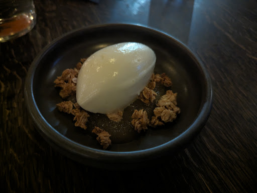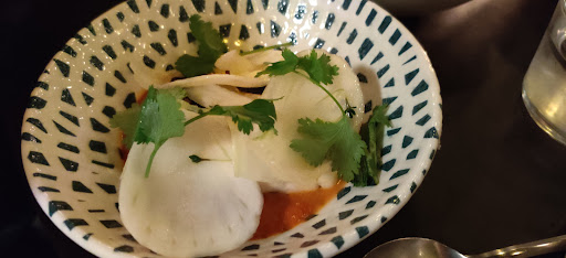 Later edit: came back in January 2024 as a table of two. This time the experience was quite different: the place was quieter, service was great, but the food was less tasty than I remembered. I really liked the hummus, the chicken and the apple sorbet dessert. On the other hand, the pita bread was undercooked and a bit soggy, the cauliflower was tasteless and the kebab was dry. And the small tables can barely fit the tasting menu.