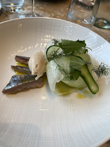 Read moreI don’t know … this place has been hyped by the big Danish newspapers but I don’t think we will return . Don’t get me wrong , the food is actually quite nice but for almost 900 DKK per person for a 3 course menu and corresponding wine you’d expect a nicer atmosphere and bigger portions . The place is a bit 80s style , there is pop music playing and there were some apparently regular guests at the bar guests with big tattoos or a short with a naked picture of themselves you would probably not expect for a fine dining place , which price-wise with 1700 DKK for 2 would correspond to. No wonder we still got a seat with short notice on a Saturday evening . Again, the food is quite nice, the service is good and friendly but it needs more for a fine...
