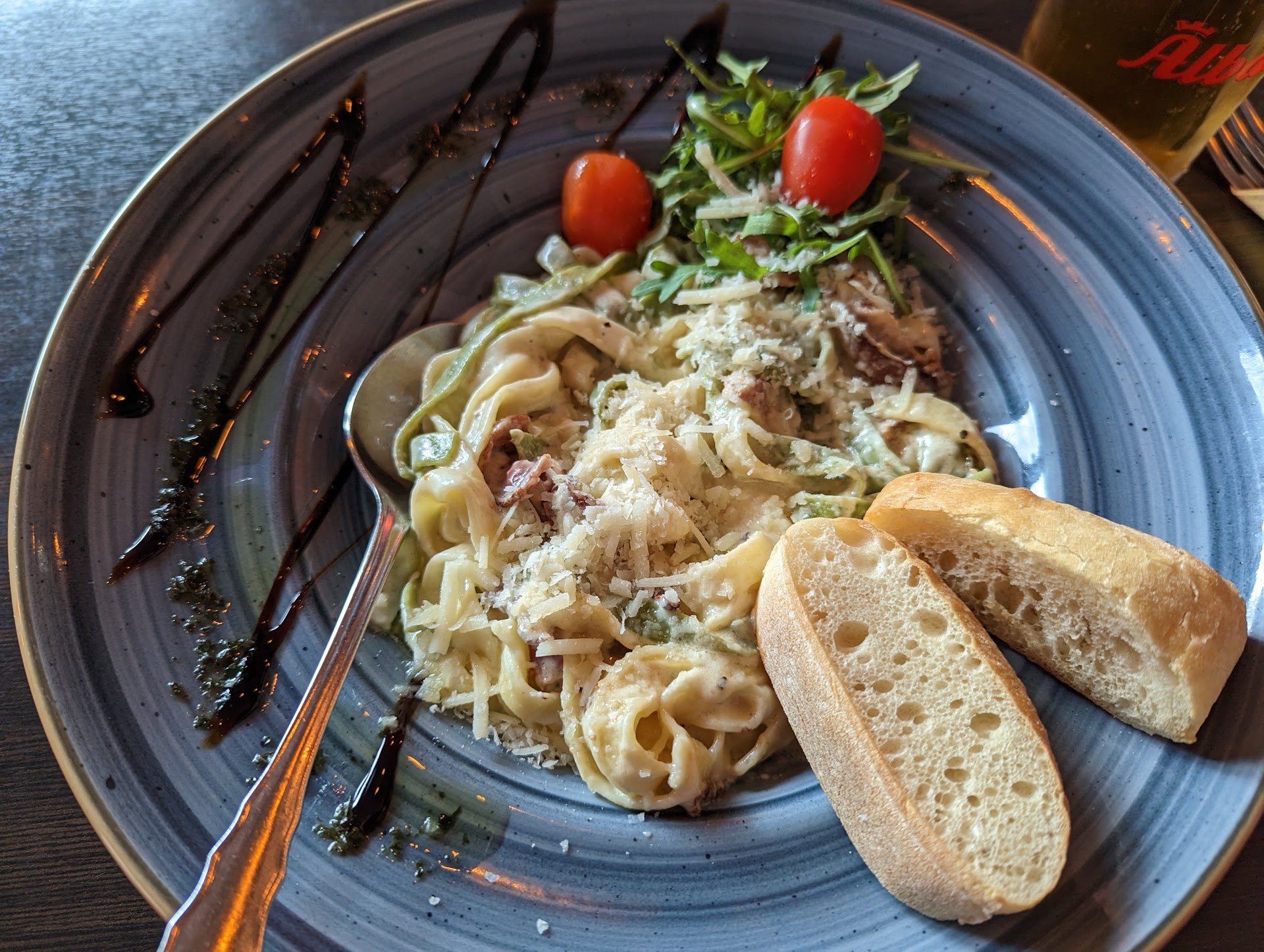 The Italian-inspired menu featured pizza and pasta dishes, salads and a selection of hamburgers and steaks. The price level was within what is normal for this type of place in Copenhagen and the pizzas were between 10-16 EUR. The place also had a good selection of beverages and drinks.