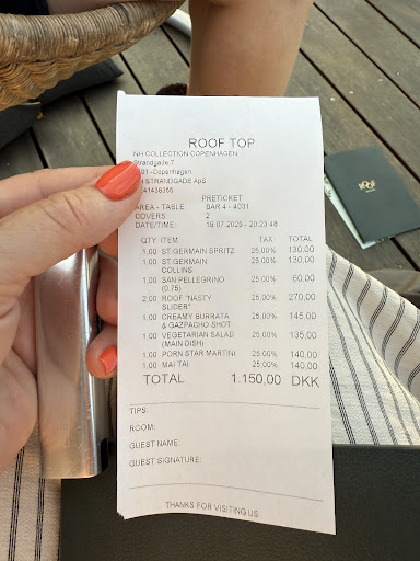 A drink is 130-150 DKK (18-20 euros) and this would be acceptable if the quality was very high. But it seems they put no effort into the bar and sometimes even used a novice to just pour something together that simply tastes like sugary flat water with an ice cube.