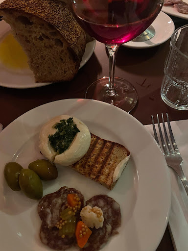 For the two main dishes, the choices were tartare or octopus and pasta with cheese or sausage with polenta. I got the tartare, which was okay but nothing special, and the pasta with cheese, which was honestly terrible. I couldn’t finish it because I just didn’t like it. The texture of the cheese was unappetizing, and despite being labeled as quattro formaggi, it just tasted mostly like gorgonzola. My colleagues who got the octopus said it was really bad, and the sausage was just mediocre.