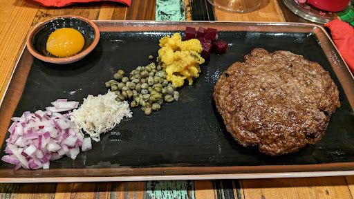Eventually got our food, after a really long wait. Traditional pariserboef was as you'd expect it, their pasta was incredibly unappetising in its visual appearance and we had to ask for a spoon to be brought (how do you eat tagliatelle without a spoon?). Not a single piece if green in sight, just a uniform light brown mix of stuff....