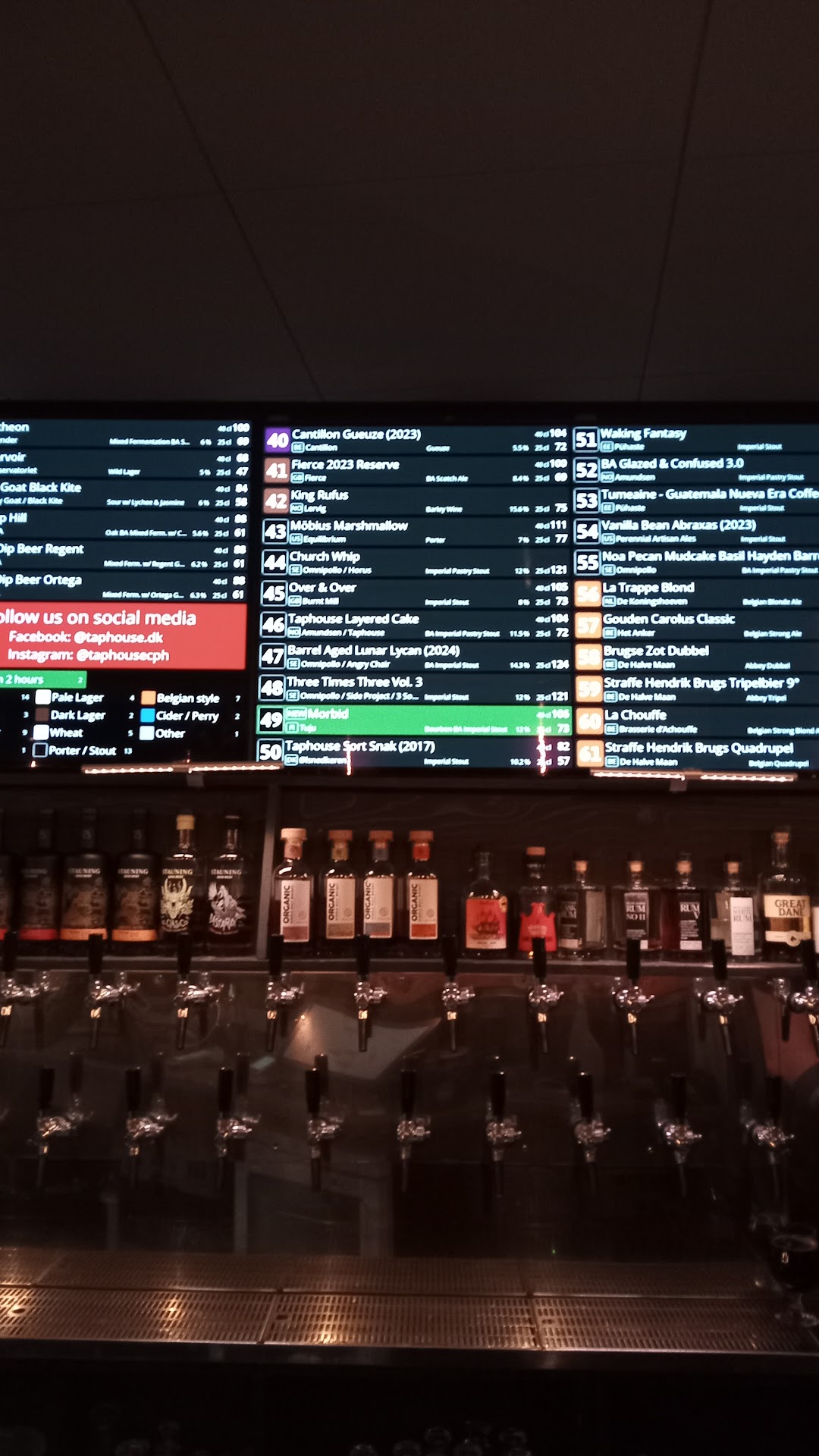 Read moreGreat concept but falls short of expectations. We went here twice during our visit to Copenhagen. The first time was on a Friday night, and although it was crowded, the energy was pretty low. The atmosphere feels more like a sprawling cafe than a tap house. The 61 taps are impressive and the beer is great, but the design of the place - three bartenders crammed behind a small, poorly designed bar with no true wait staff - mean that you need to wait to order. The bar itself has a strange geometric design, which makes it difficult to squeeze between patrons to order.