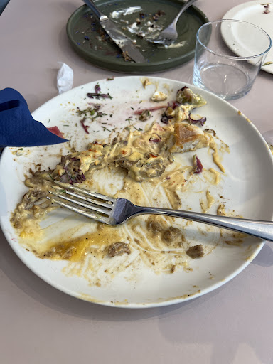 When asked for olive oil for the bread (as on menu it says they don't use butter if you ask for vegan) the waitress responded that they don't use it. We asked if they use vegan butter so I've got that. I've got shakshuka which in itself was tasty. A bit weird because it was not really made as it should, they just fried eggs and topped it with tomato sauce, hasselnuts, pomegranate seeds and dates. Bit odd combination but actually worked! The position was half the plate so for 150kr/20euro I didn't fill myself. After the meal I started to feel funny. I was asking another staff member if they've for sure used vegan butter, she ran to check with the chef and came back with the answer PROBABLY. When you deal with allergies and intolerances, probably isn't enough. When mentioned that I feel funky, her answer was that they've not used anything. I insisted that there was definitely some fat, butter or something as the bread was toasted, her response was that the cook fried the eggs on olive oil...
