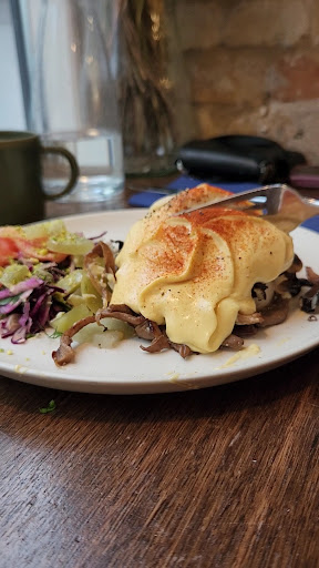 My wife had the Benedict (vegetarian version): Flavor explosion with oyster mushrooms! This mushroom farmer appreciated the gourmet shrooms!