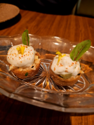 Read moreHad the 8-course. First impression is a cosy basement space (with no noted unpleasant odors as some have mentioned), evenly spaced seating and good acoustic - not the Copenhagen-brand "intimate" spacing which means you're staring people in the face as they sit next to you and everyone is shouting over their food to be heard by their partners. We recognized the only (very busy but very polite and calm) server from a previous visit, and he introduced himself as the owner. The first dish was three separate crunchy delicacies that were definitely worth the difference already between the 8- and the 6-course! I was hooked. We proceeded to lose track of all time and place as tasty dishes came with 15 minute precise gaps and proper introductions. We ordered the sake mojito and were impressed at the kitchen's skill in bringing out the best flavors of sake with this refreshing drink. Each dish brought familiar flavor and skill from Asia but with plenty of European and Nordic inspiration. A true delight to visit and eat here, definitely amongst the best fusion, and best restaurants...