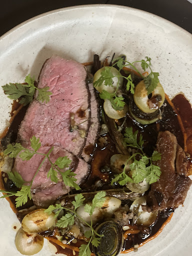 Even worse, those two pieces of meat should never have left the kitchen — they were undercooked (practically raw) and extremely tough. I left half of mine on the plate and complained. Another person at our table received the same dish a few minutes later, and they were served multiple pieces of perfectly cooked, super tender meat. So it’s clear that someone knowingly pushed out two substandard plates, which is incredibly disappointing in a restaurant of this caliber.