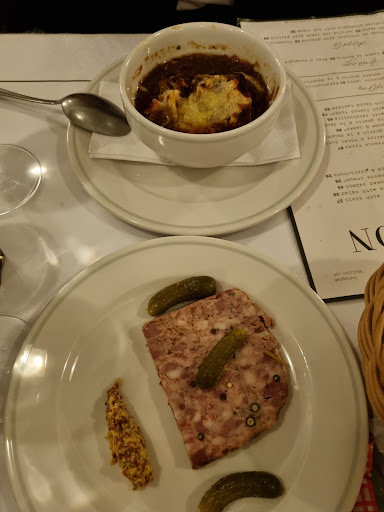 As for starters, we took the pâté, that I've been missing so much here (as it is quite hard to find a good and decent one) and was satisfied with it. It is served traditionally with pickles. We also had the oinion soup which was very good!