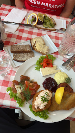 We had a delicious sandwich lunch in this traditional Danish restaurant. White red tablecloths and a beautiful old house in a central location on a pedestrian street works really well. When the sandwhiches are really good and quite reasonably priced, it's clear that this place is worth visiting. The only downside is that others agree and the restaurant can be very full and it takes a long time for the food to arrive (or to get the service at the first place). It must also be said that during busy times the waiters are also very busy, and not always as friendly as one would hope. I don't know if the famous toast Skagen comes from this restaurant, but it...