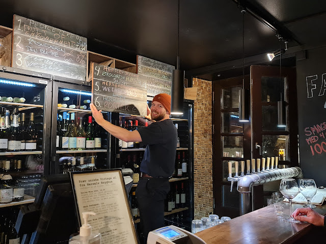 Please!! This is not only a GREAT beer and wine place. The quality of the food is BEYOND BELIEF. One of the absolute TOP stops for us in the whole of Denmark. It is refreshing to see a host so willing to go into detail about the provenance of all the ingredients and the geographical details. Extremely reasonable prices too. If you enjoy the best in charcuterie, cheeses and wine/beer/cocktails, do walk through the door. If you don't get it, go get a burger somewhere and stop reviewing places you don't understand. 5 stars cause I couldn't...