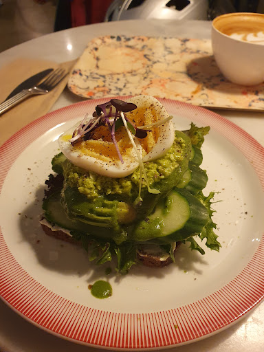 A nice little Café! We had iced Chai latte and iced coffee with vanilla sirup (3 dkk extra to have the sirup). The coffee was less full than I usually prefer it. We ordered two avocado bread with eggs, and the portions are quite small, considering the price of 65 dkk (one little piece of bread). There is free water (plain or with mint), and they have several vegan options on the menue. The service was very friendly, and the atmosphere was quite cozy as well :-) all in all a very...