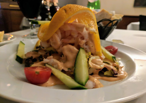 Det startede ud med at være en fin betjening da vi bestilte forret og hovedret. Da maden kommer og vi begynder at spise, smager det faktisk overordnet godt. Dog blev vi ikke spurgt om stegning af bøf, den kom næsten rå, og med hårde kartofler. Da vi næsten er færdige med hovedretten finder vi et langt mørkt hår i den ene ret, og gør derfor tjeneren opmærksom på det. Hun siger ikke det store, og tager tallerkenen med ud, og vi siger det er hvad der kan ske, selvom alle stoppede med at spise, for man mister jo appetitten. Hun kommer så tilbage og fortæller at kokkene er skaldet og håret ikke kommer fra dem (hun og alle tjenerene har langt mørkt hår). Da vi mærker hun vil diskutere det, siger vi bare at det er fint, og beder om dessert kort og giver dem en chance mere. Vi bestiller og de kommer med en forkert dessert, hun forstår ikke at vi ikke har bestilt den og vi må alle forklare hende at det ikke er den rigtige. Hun kommer så tilbage, og siger vi skal betale for den forkerte dessert og den vi rigtigt skulle have haft. Her er vi nødt til at bruge en hårdere tone for at forklare hende at det kommer ikke til at ske. Vi har allerede været meget overbærende!