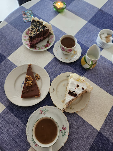 Read moreGemütliches und uriges Cafe. Ein bisschen kitschig und sehr bunt aber die Atmosphäre ist super und die Besitzer echt lieb. Mit der "Mormor" konnte man sich gut unterhalten (sie spricht deutsch und ein bisschen englisch) und obwohl ihr Mann(?) nur wenig deutsch spricht, konnte man sich gut verständigen. Der Kaffee war okay aber dafür reichlich, der hausgemachte Kuchen ist großartig und sehr sehr lecker und frisch. Eine tolle Erfahrung und ein tolles Cafe. Preislich auch vollkommen fair, etwa 30 euro...