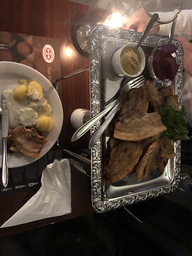 Den bestod af en rimelig stor Kalvemørbrad med kartofel gratin Og Bearnaisesauce, kødet var mørt, men selve retten var ikke Varm Den var fislunken.