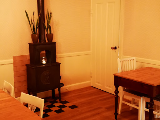 We stopped in Stege after visiting Møns Klint. Hotel Møen.was.fabulous. The owner was working and greeted us and was absolutely lovely to speak with. The restaurant was only two months old and you could tell how much work went into the decor and ambience. It's so cozy and welcoming and most of all the food was delicious. It was burger night, with a beef, chicken, and veggie option (which I appreciated) and my friend had chicken and I had the veggie. Both came with very fresh and juicy tomatoes, onions and cucumbers. This was seriously one of the best burgers I've ever eaten and I have had some great ones before! Guacamole was delicious, fries and dips as well. I finished up with a French press coffee. I was given hot milk...the absolute best...and it was a divine cup of coffee. Don't hesitate to stop in here for a coffee, a meal, or...