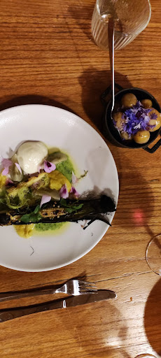 Read moreHere in this hidden winter wonderland is a gorgeous gem to be discovered. The restaurant used to be an eel smokery. Now this place is a family affair. It really was homey with the chairs covered in local sheep fur inviting you to spend hours on them eating and drinking away. Even the mother of the chef was serving us. We were particularly smitten with the young vivacious half Danish half German waitress, who was so passionate about the food and wines they were serving. Let’s talk about the food. The unique dishes were perfectly paired with the wine. Do you know the feeling when the waitress/waiter comes to announce the cheese course and you are thinking “oh not another cheese plate”? This cheese plate was nothing like you’ve had before. There was only one cheese which was as creamy as my face cream served with deliciously crunchy on the outside and soft on the inside “Knäckebrot” and an orange berry compote that tingled on your tongue - a perfect compliment to the cheese. The whole experience was deeper than a...