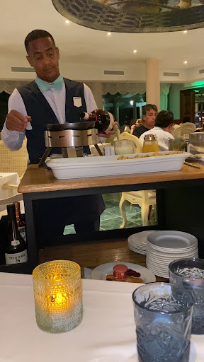 Read moreEl lugar es muy bello, es parte del complejo de restaurantes del hotel Iberostar. Solo abre de noche y cierran cerca de las 21 hs. La carta tiene opciones de pollo, pescado, carnes rojas y vegetariano. Yo probé los espárragos blancos y el Ratatouille, ambos muy bien logrados y con muy buen sabor. Con respecto a los postres, tienen un carrito con varias opciones que te acercan a la mesa para que elijas. Hay barra dentro del restaurante, así que podes pedir que te preparen tragos, también hay vino tinto y blanco sin cargo, y opciones sin alcohol. La atención de la recepcionista fue buena, pero la de los mozos es un poco desorganizada. Quiero destacar la atención de Johan que nos ayudó a gestionar la reserva para el restaurante, es muy dedicado y amable. Pasamos una...