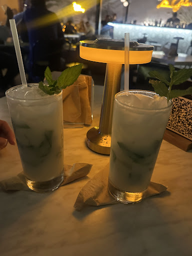 El servicio fue muy bueno, excelente. El ambiente es agradable, aquí destacan los cocteles de autor, dulce inocencia me sentí bebiéndome las mejores habichuelas con dulce y a la vez bebiéndome un trago muy pulido, Fátima tiene claras de huevo y por eso estuve un poco preocupada pero nada que ver el trago es un poco seco pero igual es un trago exquisito donde cada complemento brilla por sí solo y por último los mojitos de coco y fresa, les juro que por ese mojito de coco vale la pena todo está en mi top1, quitándole el puesto que ocupaba por años Four Jacks, pero el de fresa no fue muy de mi gusto no está mal.
