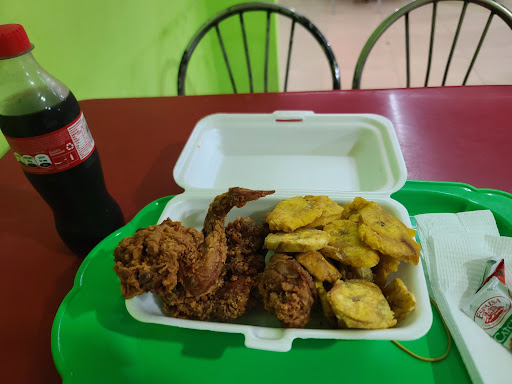 Un pollo muy bueno. No me quejo para nada de la comida. Mi único problema es que es un sitio de apariencia antihigiénica pues la entrada siempre está llena de perros callejeros y gente enferma que entra a pedir dinero (mínimo 1 perro y un señor), pero eso no es tanto culpa del local sino un problema social. Lamentablemente no es un sitio para sentarse a comer, tiene sillas y mesas pero al estar en la orilla de la calle principal, más los perros callejeros y etc, es un sitio de entrar, comprar y salir corriendo. Normalmente hay entre 4 y 5 personas en fila en hora de comida pero a veces se satura, pero no...