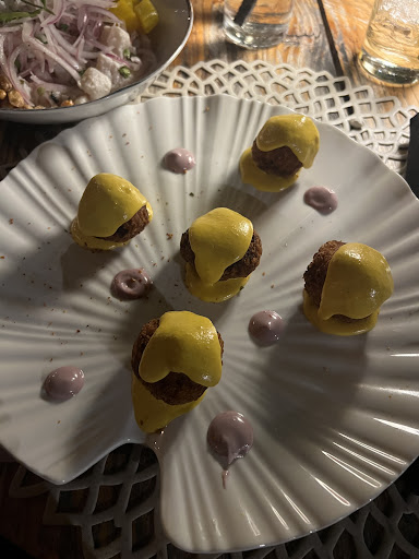 The small town of El Limón in the northern coast of the Dominican Republic, just a few hours’ drive from the Capitol Santo Domingo, is a quaint, homey and a friendly community in the midst of one of the most lush, green, pure, untouched and natural wonders of the Caribbean. Within its hills, valleys and white sandy beaches, strewn with local fishing boats, thatch huts, galvanized steel roof, incredible fresh foods, the town is chalk full of shops, eateries and craft shops, one knows you’ve arrived at an oasis paradise of calm and tranquility – just watch out for missing pothole covers. Such is the exuberant, openness and open-air ambience at Porto by Mosquito just a few miles out of town. A restaurant of incredible attitude and uniqueness. Their service is impeccable, the attention to detail is beyond reproach, and the environment and décor incredible, the food is superb. My wife and I have travelled many, many miles, and many, many places, and there are very, very few places we’ve experienced that can parallel or even come close to the incredible attention to detail, the service and especially the meal we’ve experienced here. First, the location is as a giant tiki hut fronting a beautiful landscape to the Caribbean Sea. All the design and atmosphere are real… real fruit art, real palm proms, real wood, real people, real atmosphere. The food, wow, the food was terrific! We started with appetizers of an incredible Ceviche Peruano Clásico of fish of the day marinaded en jugo de Limón, some very strong red onion, fresh cilantro, dried maize and just vaguely but perfectly spicy – just right. We leisured on the Tacos picante de camarones con salsa de Mango… hmmm delish. We went on to enjoy their tacos de camarones salteados, also in a mango sauce but beautifully spruced with lemon, cilantro and onions in mild yet flavorful picante salsa, and sautéed spicy shrimp tacos, also in mango, cilantro, onion and lime salsa, with jalapeño on corn tortillas. And finally, dessert - a fabulous artisanal-prepared coconut ice cream they call ‘Helado Coco Tai’ served in jícara (gourd) Artisanal Coco Tai rich and smooth coconut ice cream served in the coconut shell. My wife’s birthday was a success… a beach front sand with tranquil waters rippling on the shore, with the sea breeze wafting the air around us, and an open air and high-ceilinged architecture abounding in open, rustic yet romantic surrounds. Thank you staff, management and chefs for one of our most memorable moments. Muchisimas...