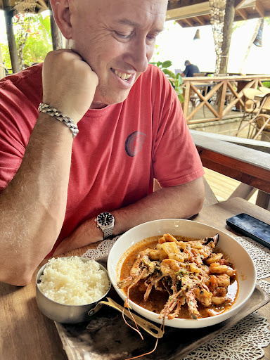 Read moreSuch a stunning location and beautifully designed building. Love all the woodwork and the fantastic wood furniture. The beach is super enchanting with water. You can just walk straight out in. Truly a five star location, which is worth coming to just to have a drink on the patio. Walk in from the beach and rinse off with their very nice showers in front of the restaurant as well as a conveniently located foot wash when you climb up the stairs from the beach.