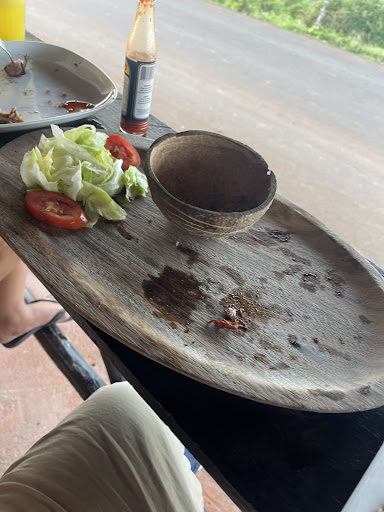 My boyfriend and I stopped here for lunch while visiting Playa Rincon. The location is amazing, it’s right on the beach and the view is beautiful. I told the waitress that I am a vegan so I do not eat any animals or animal by-products. I wanted to order rice and beans but was told they had none so I opted for a salad. My boyfriend ordered a fish that came with fries and a salad. Both of us were really disappointed with our meals. The salad came with no dressing and consisted of iceberg lettuce, tomatoes, and sliced onion. I consider that to be sandwich toppings, not a salad. My boyfriend thought his fish and fries were below average, the food needs to be seasoned better. The workers were bored and unmotivated but we still paid $22 for this mediocre...