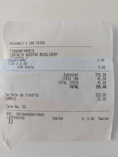 Read moreThis is a fairly clean and comfortable McDonalds. They offer delivery, table service, wifi, play place and serve certain foods that are only available here in the Dominican Republic; not in other areas, such as beer, guacamole wraps and McChimi. Normally their food is quite good however today the bread was very hard and the food seemed to be lacking salt, although it may have been just me on the salt. They are making an attempt to be eco-friendly. You must ask for lids and straws for your drink if you wish to have them. They will not automatically give...