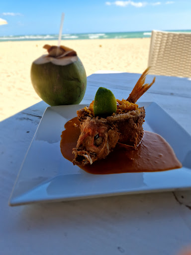 El lugar es muy acogedor, hermoso, variado, pues tiene tres lugares donde puedes degustar de la comida en la arena, en la terraza o dentro del restaurante, que es mucho más sofisticado. La decoración y música del lugar excelente, el servicio debe ser mejor, pues cuando llegue dije ¡Buenos días! y tardé una 5 minutos parada en la puerta de entrada, mientras que la recepcionista o bartender y camareros me miraban, pensé que estaba cerrado, luego entró un empleado, al parecer de la cocina a quien le pregunté si estaba abierto y me dijo que sí, luego vocifero al camarero y la chica para que me atendieran, luego pasamos a la terraza (MI hijo de dos años y yo) nos sentamos a la mesa donde el camarero ni siquiera tuvo la amabilidad de pasarme el menú, sino que lo lanzó a la mesa y me dijo, este es el de bebidas y este de plato fuerte, muy grosero por cierto esa actitud, luego pedí y tardaron más de 45 minutos para servirme, llegados los 45 minutos el chico me trae los platos que pedí, luego se quedó murmurando con su otro compañero, en un instante se me calló el tenedor viéndolo el camarero y cuando vio que lo tomé del suelo e iba a pedirle otro, pues se espumo. En ese momento vino otro compañero quien me dio el servicio final por quien les he puesto una estrella más, muy humilde me pasó otro tenedor, me retiró todos los platos, porque ya habíamos terminado, le pedí la cuenta y pagué. Luego vino el primer camarero quien retiro todo lo demás de la mesa, sin pedírselo y sin yo decirle que ya me iría, él mismo comentó "¿¡se van!?" A lo que me quedé, no pero..., el primer camarero cambio cuando su amigo le susurro que yo había pagado con 2000 pesos en efectivo y la cantidad de propina que dejé, no para él, sino para el camarero humilde que me atendió cuando el se fue. La comida muy mala, la carne estaba un poco dañada, el puré tenia un sabor a cinco días de guardado en el refrigerador, el pescado malisimo y con la sazón al descubierto, hasta con una bolita de sal, deberían de modificar eso platos y ser más cuidadosos, el servicio al cliente es excepcional, mal servicio y mala comida, es un lugar donde no me gustaría volver...