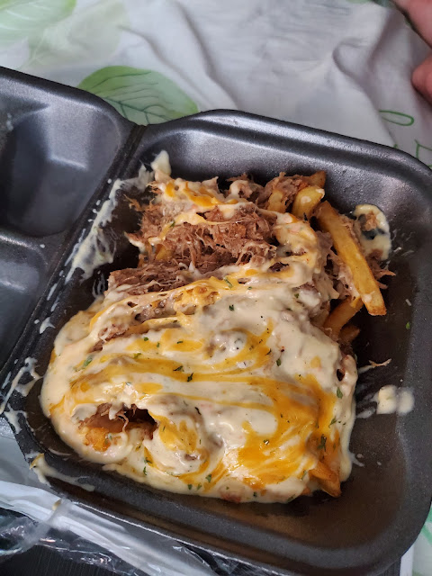Las papas de Pulled Pork son una cosa de otro mundo. No tengo idea que quesos lleva, pero es mejor no saberlo. Es un misterio a averiguar cada vez que las vuelva a comer.