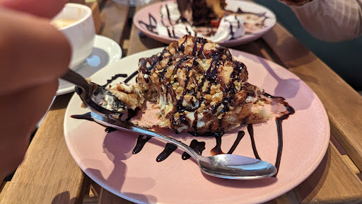 Read moreHe ido aproximadamente 8 veces en los ultimos 3 meses a este lugar y cada vez que voy, exceptuando al cafe, elijo algo diferente. Desde una malteada, un cheesecake de pistacho, un clasico brownie o unos deditos de novia; no ha habido nada que haya dicho objetivamente "esta malo". El empalagamiento a mis 30+ años es algo que no puedo controlar, asi que no lo tomo en cuenta. Las chicas son un amor y siempre me envuelven y termino comprando algo de más. En general, muy recomendado para picaderas, postres y bizcochos. El local tambien se presta para reuniones de amigos y cumpleañitos. Dense una vuelta. PS: Tienen libros disponible para darse una leidita mientras se toman su café. Con eso me ganaron...