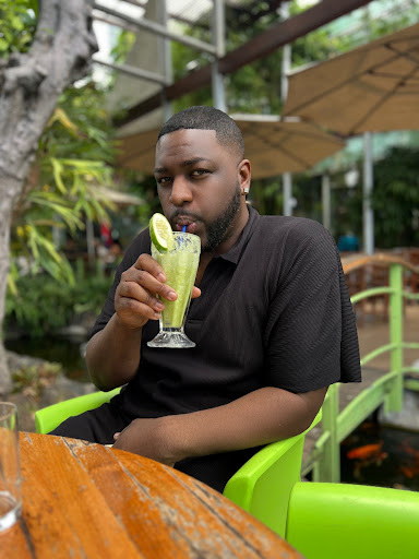 We decided to sit outside and enjoy the beautiful scenery. 🌺 I had the pleasure of having a mini pond right next to me, filled with the most exquisite fishes. 🐠 To kickstart our brunch journey, I started off with a refreshing cocktail, while my bestie opted for a refreshing green juice. 🍹🥤