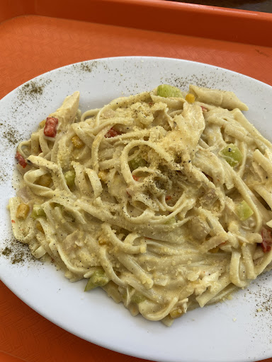 Ordene una pasta, los ingredientes estaban sin tapar, desordenados, los cucharones estaban sucios porque utilizaban uno o dos para todo. La joven que hizo la pasta no lavo el sartén donde hizo la pasta, lo cual no fue de mi agrado, además de que limpiaba los cucharones con una servilleta y no utilizaba guantes. (Si fuese una persona alérgica a los camarones y ella no lavara ese sartén y sin percatarme hace mi pasta y me la como, hubiese podido tener una reacción alérgica y ustedes nisiquiera les importaría eso.) La pasta quedó insípida y desabrida. Y aparte de esperar para cobrar, para que te atiendan, también deslíes esperar para que te entreguen cubiertos y cuchillos, la bebida u otra guarnición.