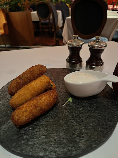 We had as a starter the "Pegao al Plato" aka White Fish Carpaccio, it was delicious. As our main we had the tomahawk steak, it was cooked to perfection and tasted great. As dessert we had Creme Brulee and Expresso Sundae, both were delicious)