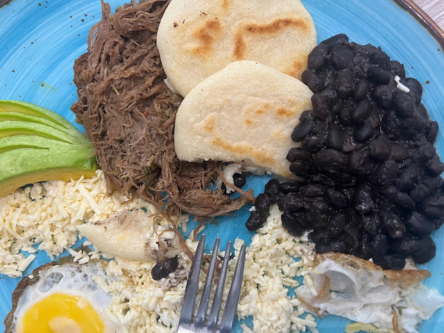 Read moreI stopped by for a cup of coffee but ended up ordering more after discovering the Venezuelan breakfast menu. The Venezuelan arepas were skillfully prepared and topped with butter, which made the dish absolutely delicious. I read a review where someone complained about "dry pancakes," but it shouldn’t be confused with American pancakes as Venezuelan arepas are completely different. They are made from corn and are typically savory dense and used more like a fresh flat bread. You can enjoy them plain, on the side, or stuffed with meat and queso de mano, a type of fresh cheese. I opted for the Venezuelan breakfast plate, which included the queso de mano, carne ripiada in DR* or carne mechada in Ven* (a kind of pulled beef), eggs and black beans and it was glorious. The meal was like a small adventure and took me back to Caracas with its authenticity.