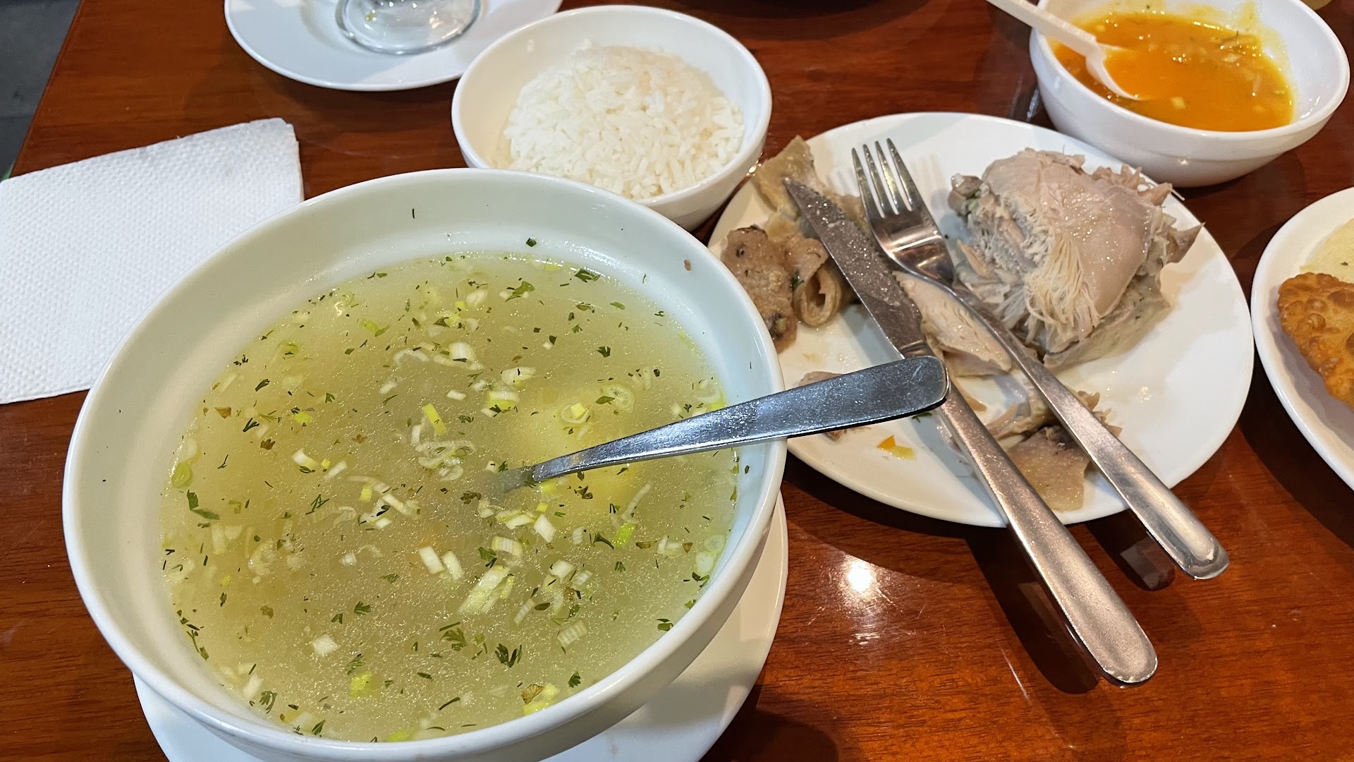 Went to have dinner an hour ago. To start whoever took the order downstairs didn’t write down 2 lemonades. We were table 06 on Wednesday 22, 2025 between 6-8pm and whoever service that table was not helpful at all my mom was chocking eating the chaulafan without a drink, he said we weren’t charged the 2 lemonades and left, there was a nice lady from other table who was KIND ENOUGH to bring at least one lemonade for my mother who is a 78 y. o. We didn’t have enough napkins, nor forks the hot sauce ran out and he disappeared 😡 never came back. HE IS AN AWFUL WAITER, he should be replaced with people who really want to service people… my beef apanado was thick, unchewable… but the whole service and atmosphere created by the awful service was unpleasant….i don’t wish them...